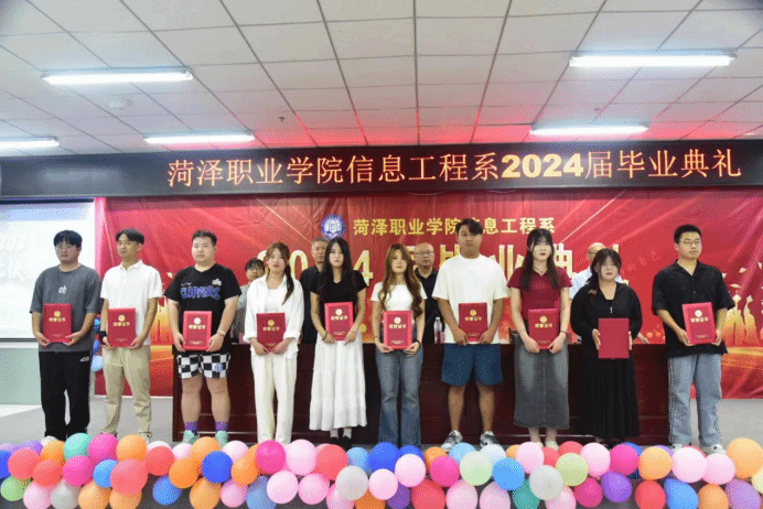 信息工程系领导为2024届优秀毕业生代表颁发了毕业证书。