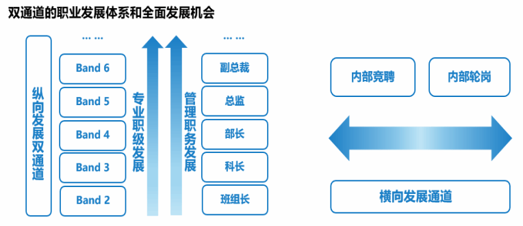 1、职级晋升:中专生定级Band2,大专生定级Band3,根据个人业绩情况进行职级晋升,薪资也随之增长