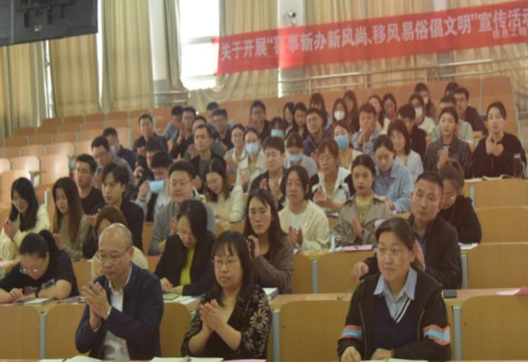 通过此次活动,广大教师充分了解了移风易俗的内涵与意义,进一步促进了教师思想观念的转变,大家表示,努力做勤俭节约的倡导者、社会新风的建设者和净化风俗的推动者。
