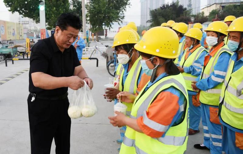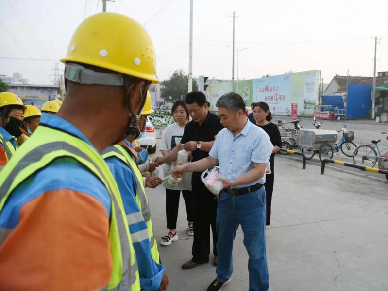 活动中,信息工程系党支部书记许先胜向坚守岗位、默默奉献的一线环卫工人致以节日的问候,感谢他们为城市环境卫生做出的贡献。他说:“环卫工人无论酷热还是严寒,都起早贪黑在马路上坚守,在平凡的工作岗位尽职尽责,向你们致敬。”随后给环卫工人送来了热气腾腾的早餐。 通过为一线环卫工人发放爱心早餐,旨在表达信息工程系师生对城市美容师的敬意和关怀。希望更多的人用自己的实际行动,做文明人,做文明事,自觉树立环境保护的意识,尊重环卫工人的劳动,爱护城市环境,共同营造我们美丽的家园,让善行延续,用正能量感染更多的人。