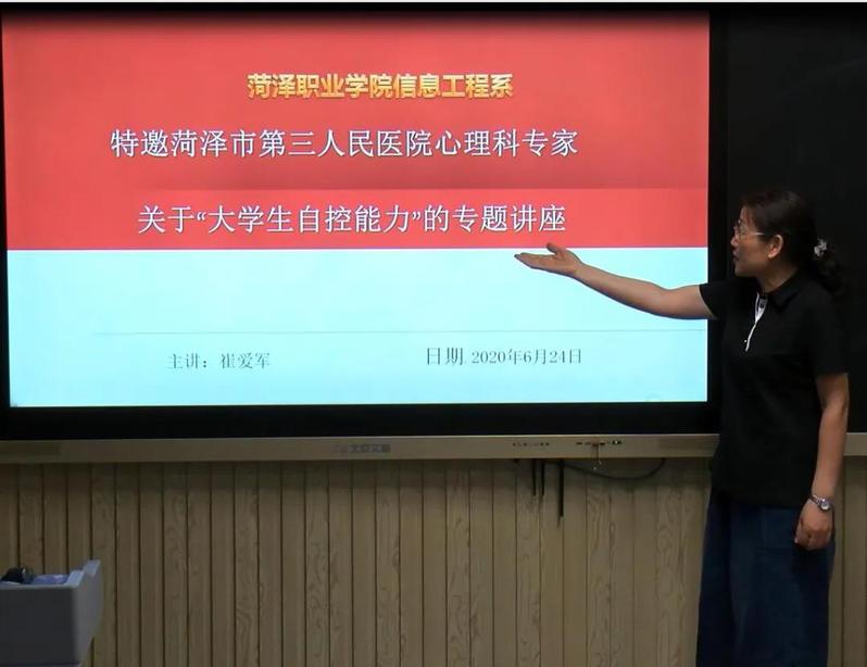 2020年6月24日上午,永利yl23411官网信息工程系邀请菏泽市第三人民医院心理科专家、心理咨询师崔爱军主任举办《自控能力失灵了怎么办》专题讲座。讲座在学院录播室完成视频录制,通过超星学习通平台分享给信息系所有师生收看。 崔主任从什么是自控力概念讲起,通过内容丰富的文字、图片、视频展开讲座,让师生们收获颇丰。通过学习,信息系教师纷纷表示,今后在认真做好教学工作的同时,还要积极地关注学生的心理健康。崔主任表示愿意和信息工程系长期交流合作,多方位关注高职院校学生的心理健康教育,为学生们的心理健康保驾护航。