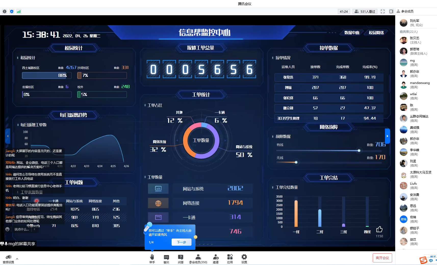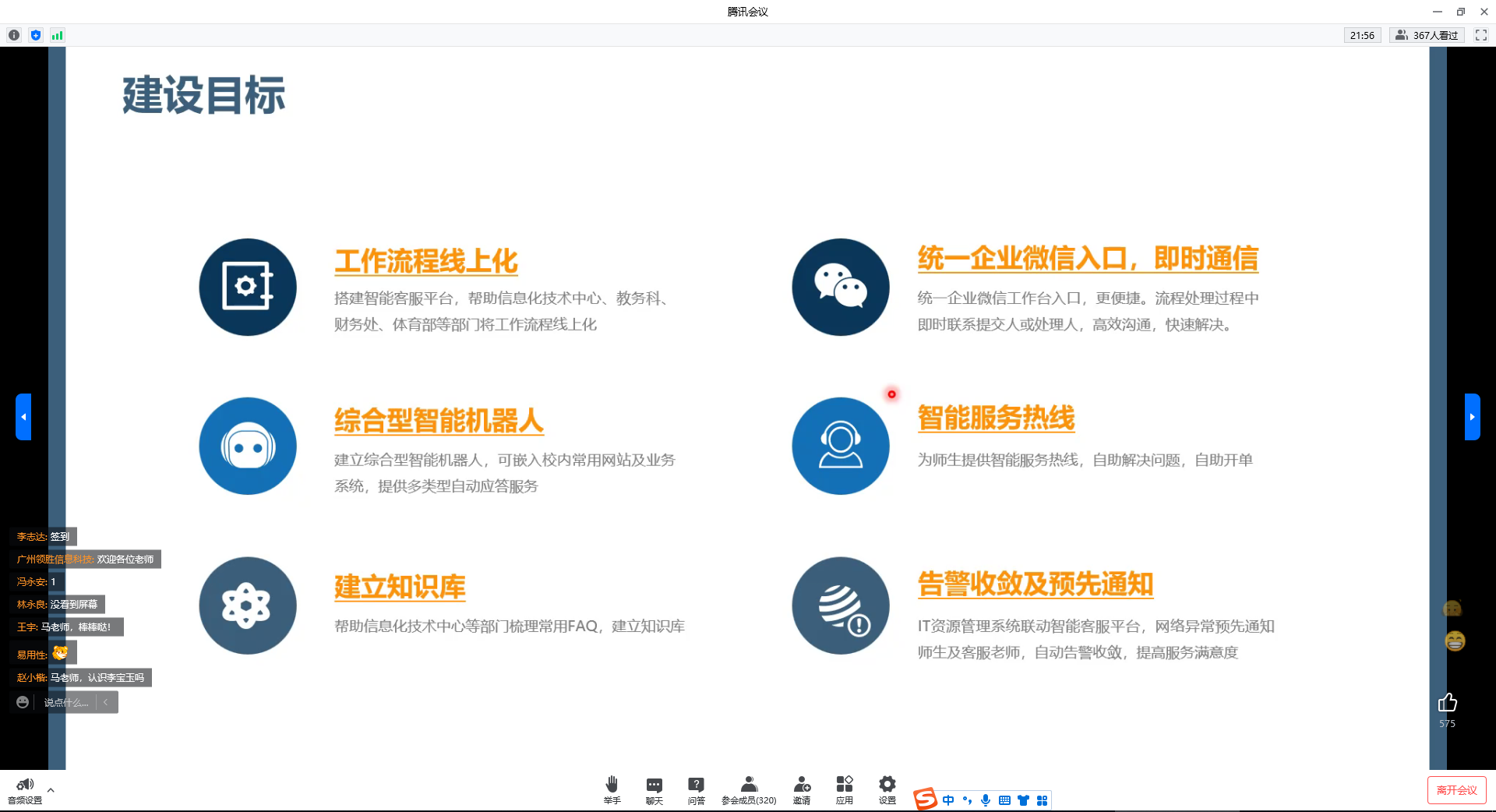 2022年4月28日下午,网络中心技术人员学习“企业微信”相关知识,借鉴企业微信应用经验,结合工作实际,就下一步如何丰富我院企业微信移动端应用展开讨论。