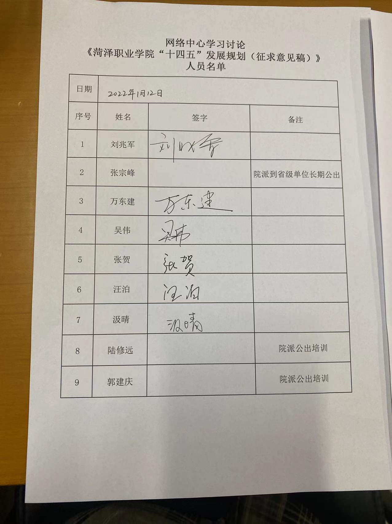 未参加人员:张宗峰(院派到省级单位长期公出)、陆修远(院派公出培训)、郭建庆(院派公出培训)