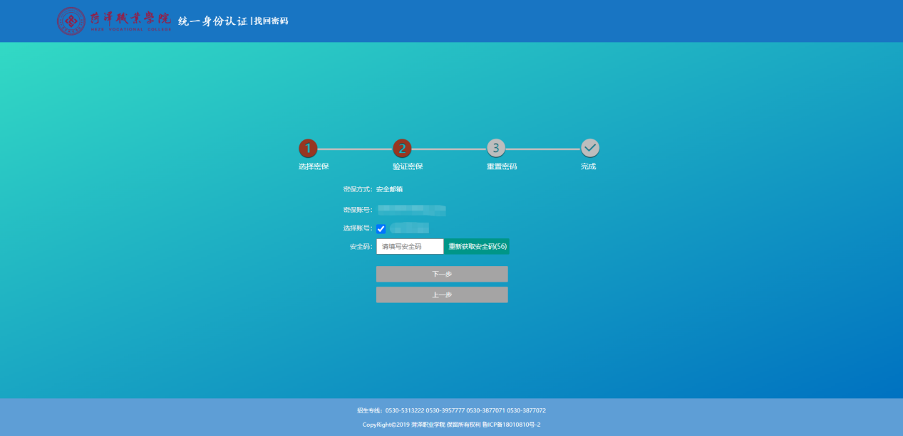 (3)进行密保验证,验证码会发送到绑定的密保邮箱,填写安全码。如下图所示: