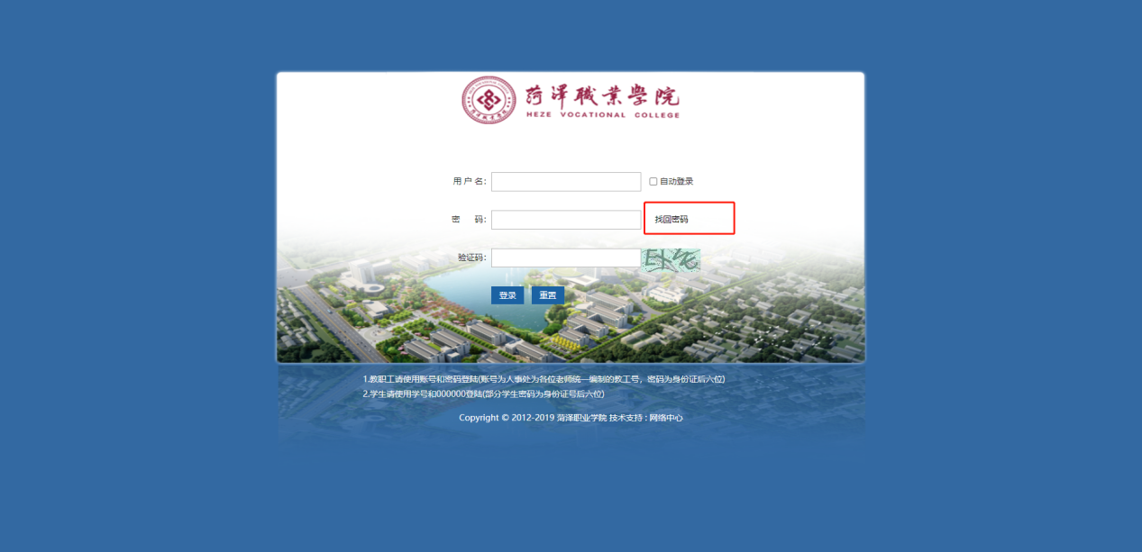 在信息门户登录页面中点击“找回密码”。