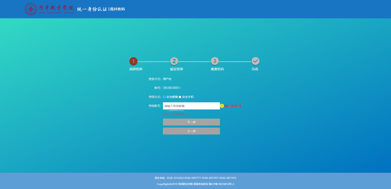 (2)选择安全邮箱,输入绑定的密保邮箱。