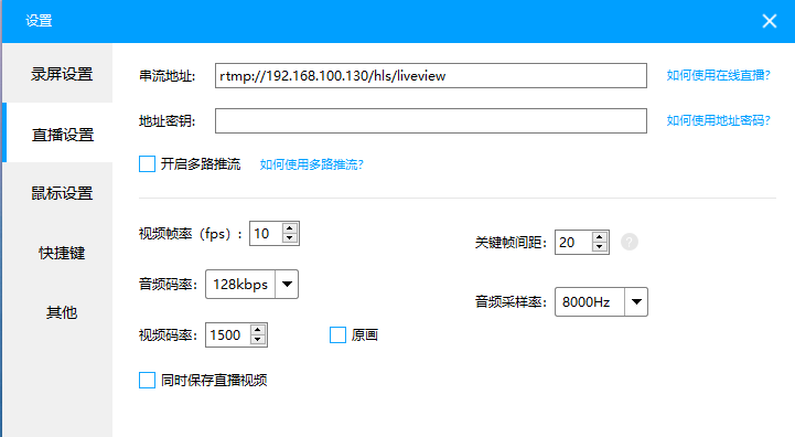 保存本地视频:如果勾选,则直播过程中会同步保存到本地。