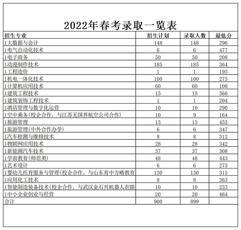 2022年永利yl23411官网春考录取一览表